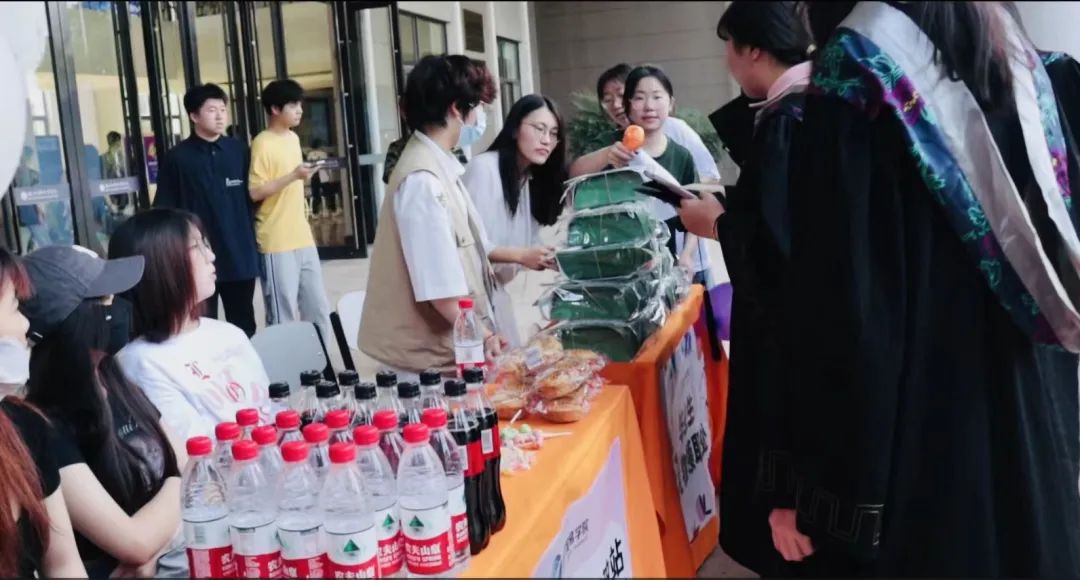 学院为祝毕业生们毕业快乐,为毕业生们免费提供饼干、面包、水、果冻的能量补给。给予毕业生们动力,也告诉毕业生们“花会沿路盛开,我们未来的路也是”。