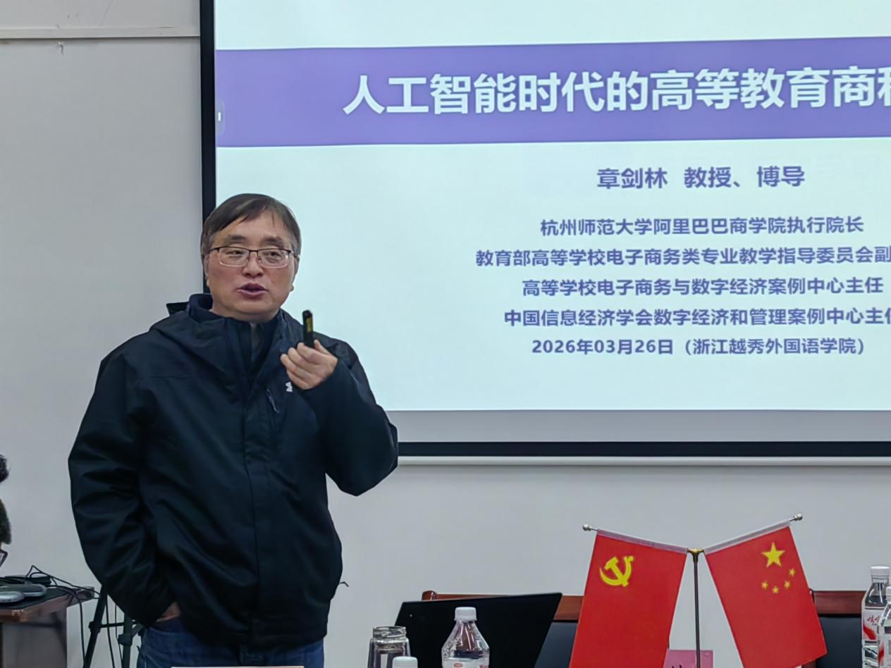 章剑林教授在报告中系统阐述了人工智能对商科教育的颠覆性影响。他指出 AI 将重塑人才培养标准,提出问题、管理决策、落地执行、社会链接、人机协同为 AI 时代五大核心稀缺能力。未来教育将走向智慧课程,教师需从知识传授者向学习引导者与人生导师转型,聚焦学生个性化学习方案制定与高阶能力锻造。教学评价应融合过程性评价与结论性评价,借助 AI 构建学生精准画像,实现因材施教;课程建设需强化跨专业、跨学院协同,推动 AI 与商科、跨境电商、大数据管理等专业深度融合。章教授还结合专业压缩整合、课程团队建设、教师转型发展等实践案例,分享商科专业适配 AI 时代的改革路径。
