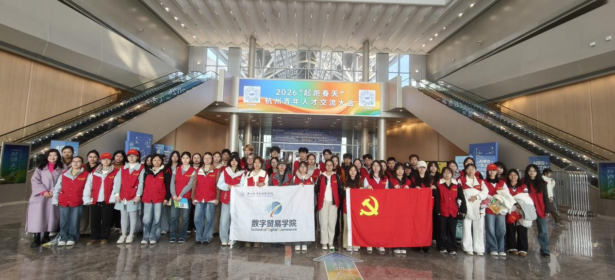 春风浩荡,英才汇聚。2026年3月14日,2026“起跑春天”杭州青年人才交流大会在杭州大会展中心圆满落幕。作为本次大会的重要参与力量,浙江越秀外国语学院数字贸易学院党员志愿者们以饱满的热情、专业的服务,深度融入这场智慧招聘盛会,用实际行动践行“奉献、友爱、互助、进步”的志愿精神,展现了新时代越秀学子的青春风采。