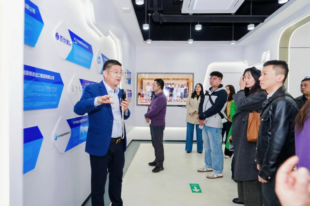 在单胜江院长的引导下,嘉宾们先后参观了数字贸易、跨境电商、文化创意、新媒体运营等特色创业项目展示区。各创业团队负责人现场介绍了项目运营模式、市场拓展成果及技术应用情况,并展示了学生自主研发的产品与服务平台。