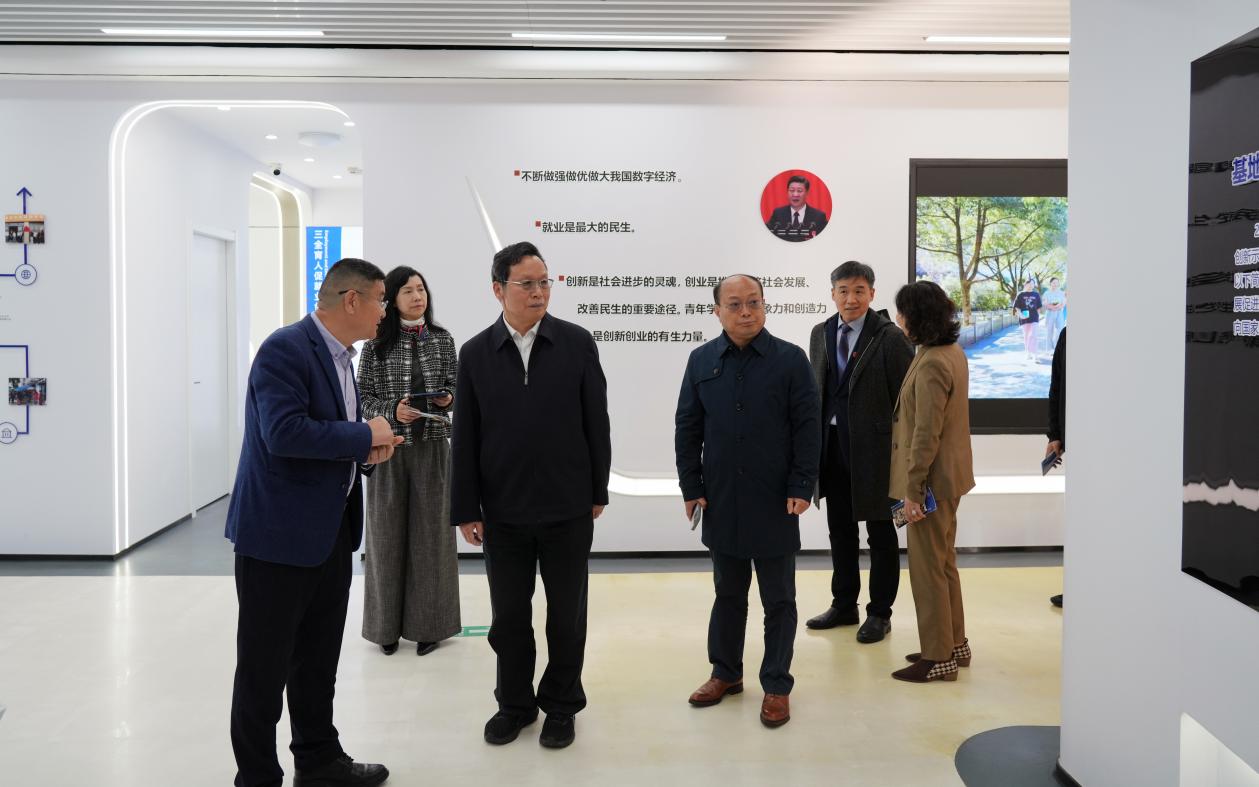 上午10时,谢经荣副主席一行抵达镜湖校区,首先实地走访了大学生创业园。园区内,调研组认真听取了创业园建设历程、运营模式及学生创业项目孵化情况的介绍,并与正在开展创业实践的师生亲切交流。谢经荣详细了解了学校在创新创业教育、产教融合及服务地方经济发展方面的具体做法,对学校鼓励学生“敢闯会创”、搭建全链条创业支持平台的做法表示肯定。