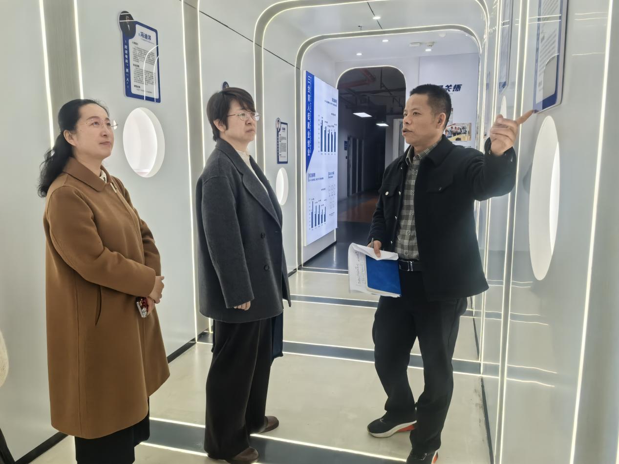 陈博丽院长一行首先参观了我校大学生创业园及跨境电商直播基地,实地考察了园区运营模式、学生创业项目孵化情况及多语种跨境直播实战场景。调研团对我校“外语+跨境电商”的特色办学模式和产教深度融合的育人生态给予高度评价。
