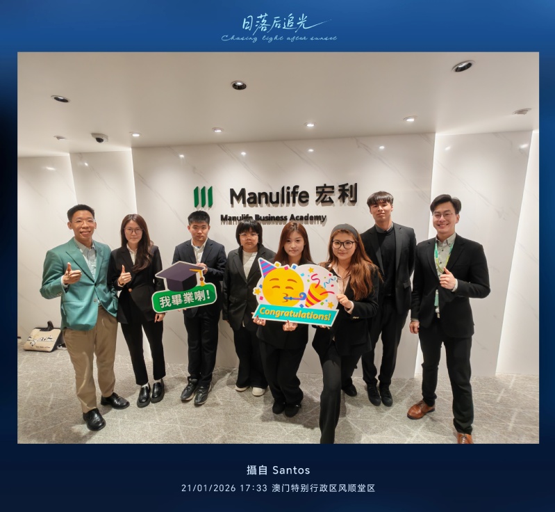 为进一步拓展学生全球视野,促进学生更好地与社会接轨,提高学生对外交往能力,并积累职场实战经验,我院学生于2026年1月18日-2026年1月25日参加学校组织的2026寒假港澳名企短期实训项目,学生以实习生的身份深入加拿大宏利金融集团(澳门)实习一周。亲身感受国际职场的真实脉动。此次活动不仅是一次跨越地域的视野拓展,更是一次从校园人向职场人转变的生动语言,为学生未来融入社会、参与国际竞争打下了坚实基础。